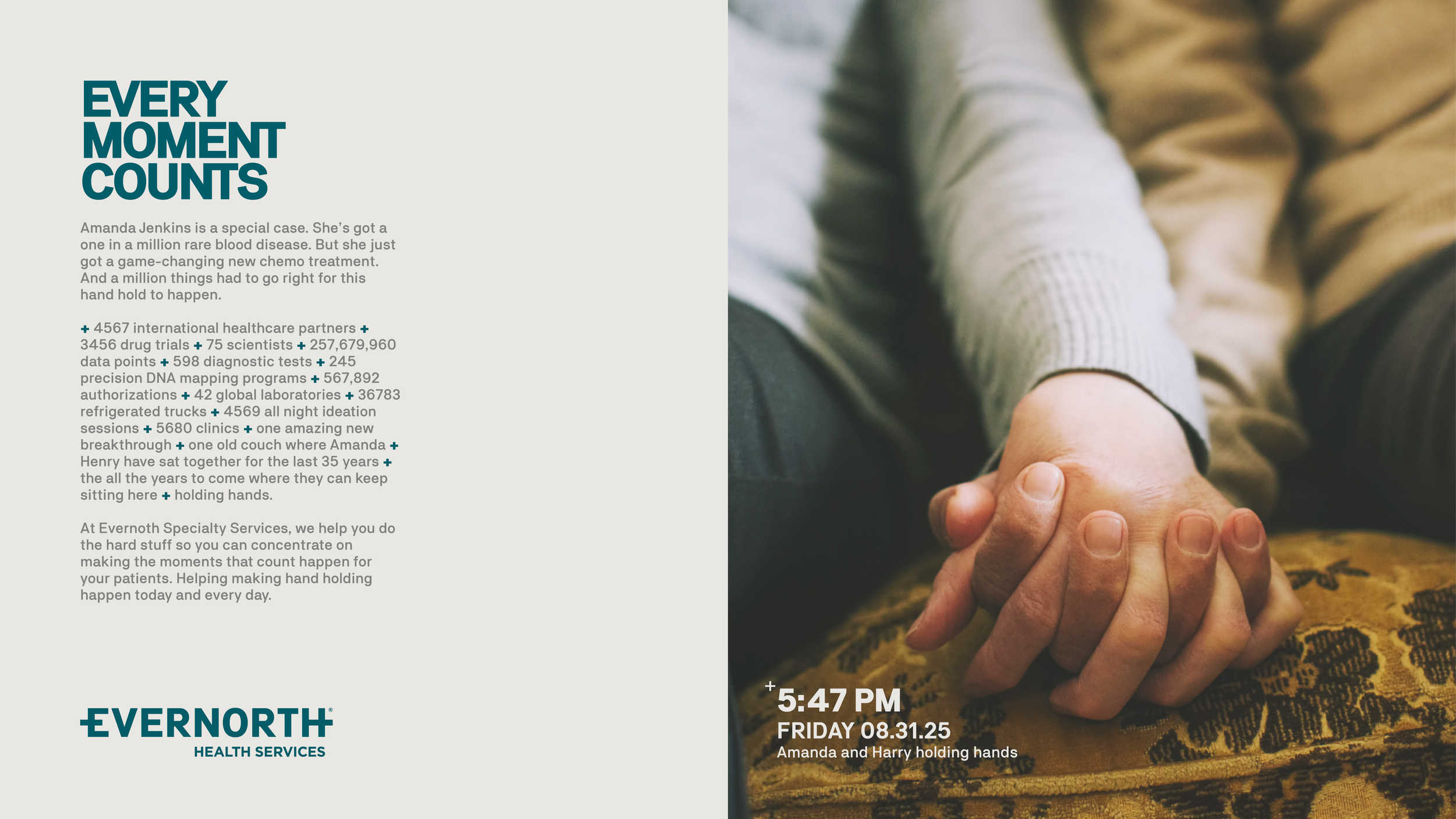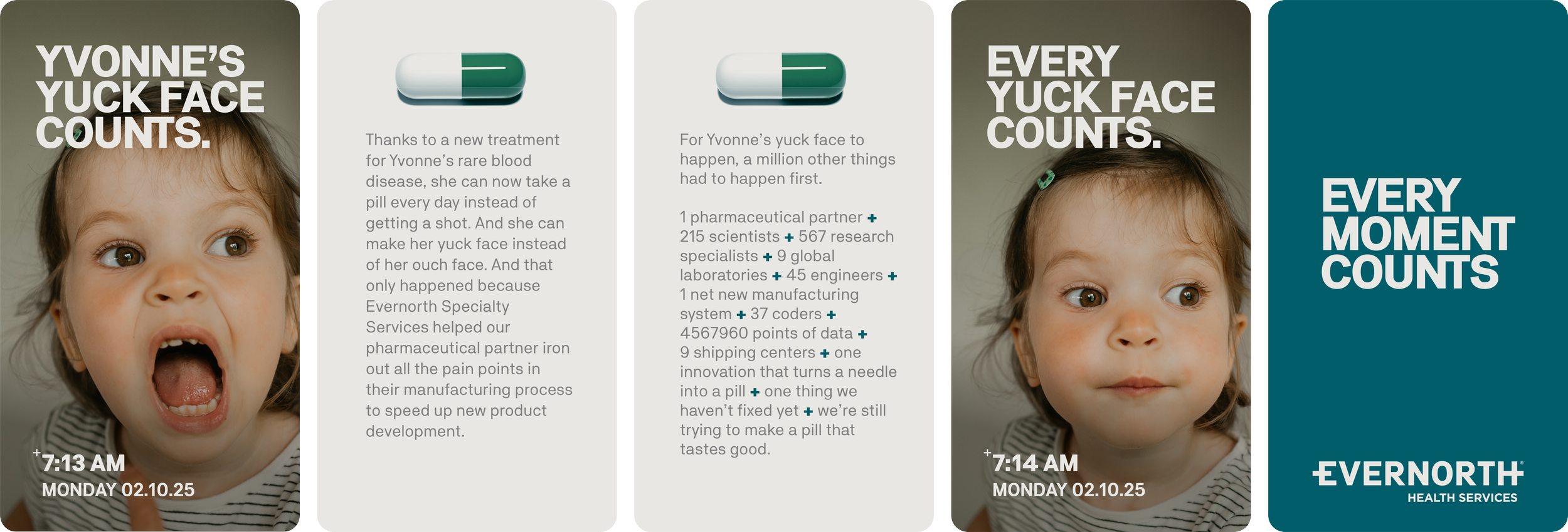 We launched Evernorth’s first-ever brand campaign with films directed by Rudi Schwab @Bodega Studios, edited by James Duffy and Grace Yang @NO6, with music by Score a Score (Jordan Passman) and mix by Paul Weiss @Sonic Union. Featuring the fabulous voice of Jamie Lamchick.